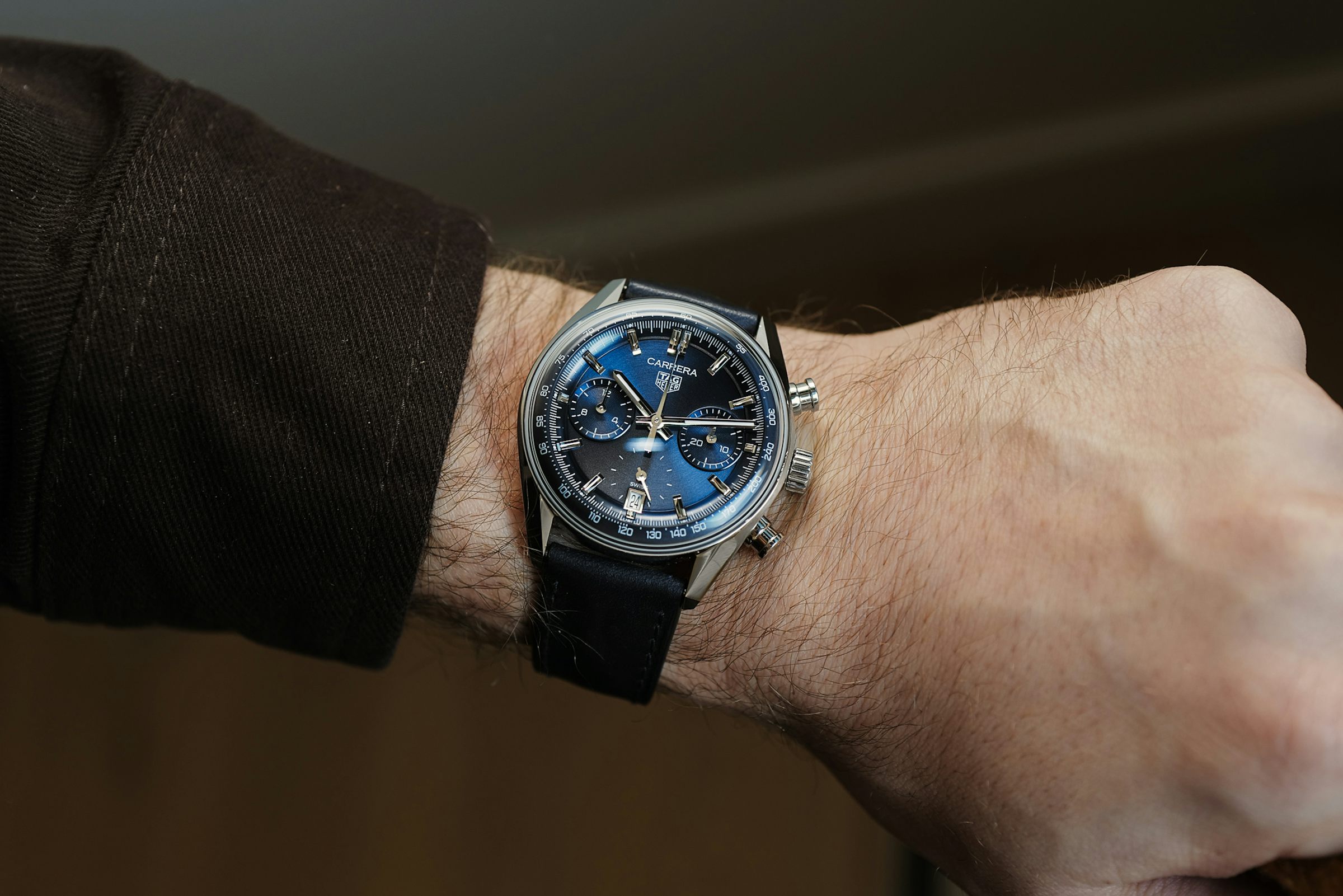 Questo Carrera riprende un nome storico della maison, ora attribuito ad un cronografo automatico dal disegno classico, ma con una meccanica moderna ed esclusiva di Tag Heuer, dato che è animato dal calibro proprietario